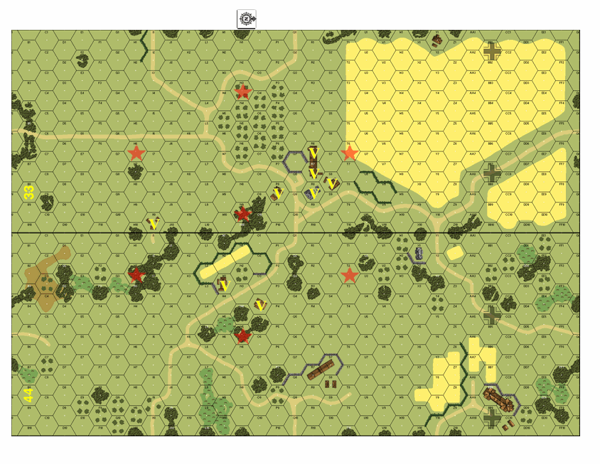The battle for Kursk had begun. After breaching the first line of defense, the 86. Infanterie-Division supported by the gigantic Ferdinand tank destroyers of schwere Panzer-Abteilung 654 continued toward the Russians' second defensive belt. But the Russian 27th Guards Tank Regiment supported by engineers was about to mount a counter-attack. The Germans would pay in blood for every inch gained of Russian soil.- - - - In the mid-sized 5.5-turn "Elephants Unleashed", a German combined arms force fight their way through minefields, wire, Russian infantry and counterattacking T-34s. Find out for yourself if the lack of a bow machine gun was really the Ferdinand's Archilles' Heel.Attacker: German (Panzer-Division 18, Infanterie-Division 86 and schwere Panzerjäger-Abteilung 654)