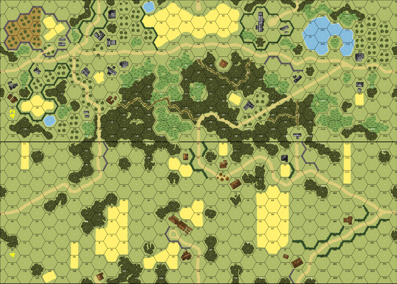 The Soviet I Tank Corps was attacking north of Obol in an attempt to smash the German 205th and 252nd Infantry Divisions’ lines. The 24th Infantry Division was shifted to the north to meet the enemy threat. During the night, the Soviet I Tank Corps poured Colonel Fedorov’s 159th Tank Brigade through a gap in the German line on an incursion meant to isolate the 252nd Division. At dawn, on 23 June, the 24th Infantry approached the forest north of Obol, where the Russians were waiting for them. Hordes of Russians in the woods shouted the blood curdling cry “Urrah” as the Germans neared their objective. Supporting StuG IIG assault guns engaged Russian T-34/85s in a merciless tank gun-battle around the forest. In the face of this determined Russian push, Schwere Panzerjager Abteilung 519 joined the battle with its precious few Nashorns.Attacker: German (Elements 24th Infantry Division, StuG Bde 909 & sPzjgrAbt 519)