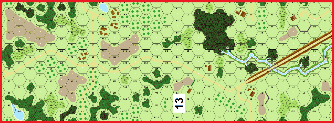 Elements of the 5th SS Panzer Division attacking with infantry and Panthers to clear a troublesome group of Russians from along the road on boards 13 and 38Attacker: German (SS) (Elements 5th SS Panzer Regt., 5th SS Panzer Division Wiking)
