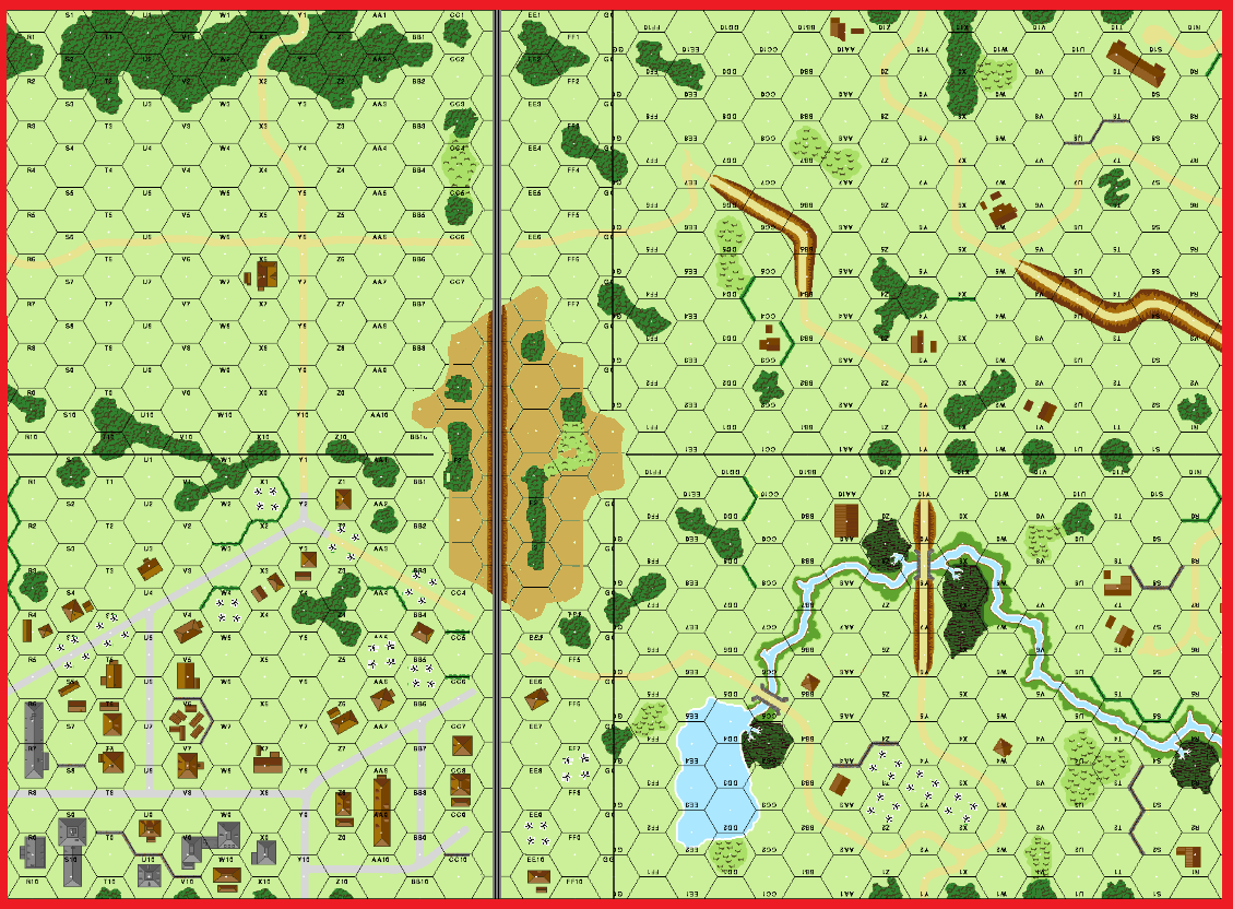 | Question: What is the base level of overlay RR13's RR hexes? Are those hexes a Sunken RR (B32.1)? Do units in these hexes count for VC purposes? Answer: Level 0. Yes. No (not even if they have Crest Status), only units in Hill hexes count. | FrF website |