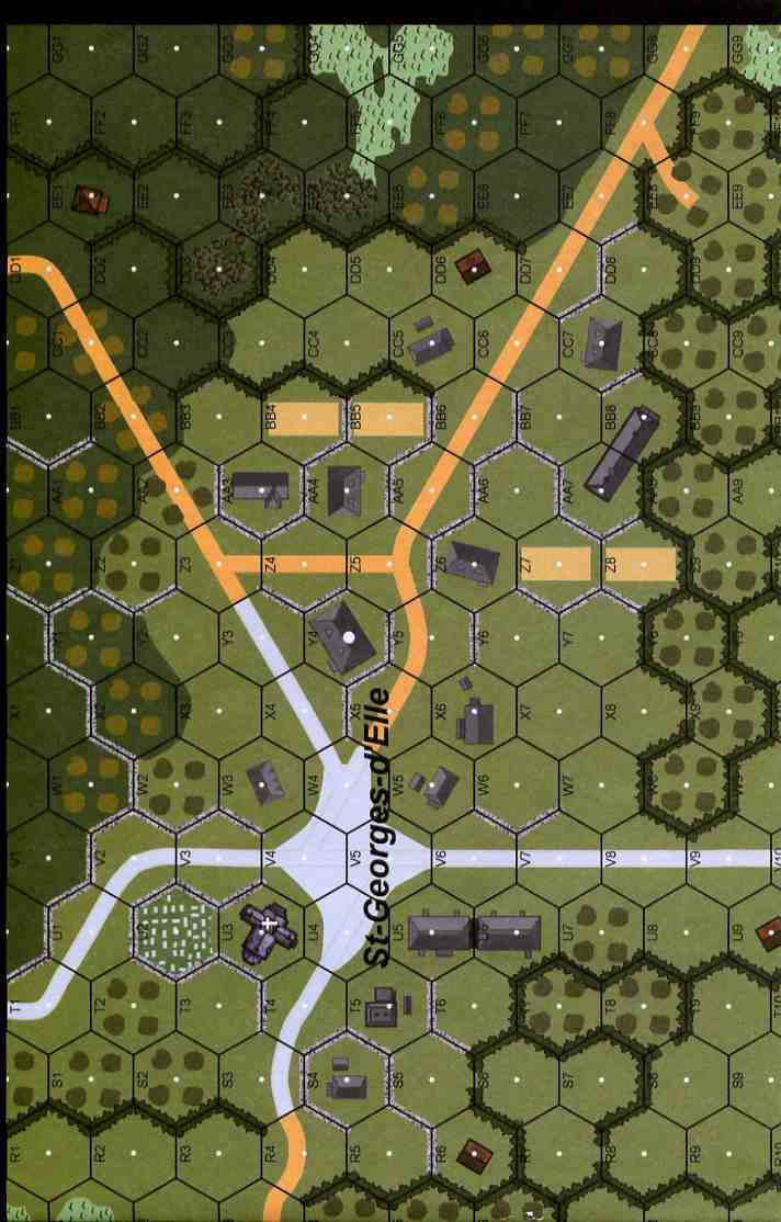 Rules and Charts can be found online at Lone Canuck site. . .The PHD Tactical Mission (TM) offers two or more players five interconnected scenarios pertaining to the battles, east of St-Lô, France, on 11 July 1944. Using this system, the five interconnected scenarios are played simulating the critical movements during the battle. . .Upon the conclusion of a Tactical Mission (TM) Scenario, the players carry out a unique TM Phase known as the Consolidation Phase (ConPh). During the ConPh, each side takes stock of what has transpired in the previous TM, and then prepares for further combat in the next TM scenario. In the ConPh, the players may Requisition Reinforcement Groups (RG) using Tactical Points (TP).Attacker: American (23rd Regt, 2nd Infantry Division)