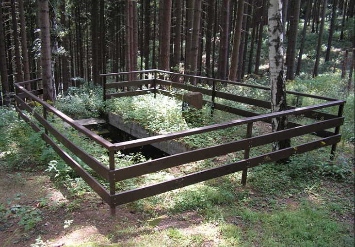 Zemlyanka used by partisans near Nýrov, Czech Republic, preserved as a World War II memorial