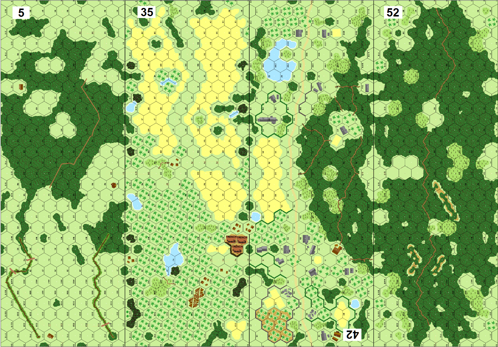 | Misc Rules: | PTO, LJ (Exc: 1 road). Treat bridges as Wooded Foot Bridges |