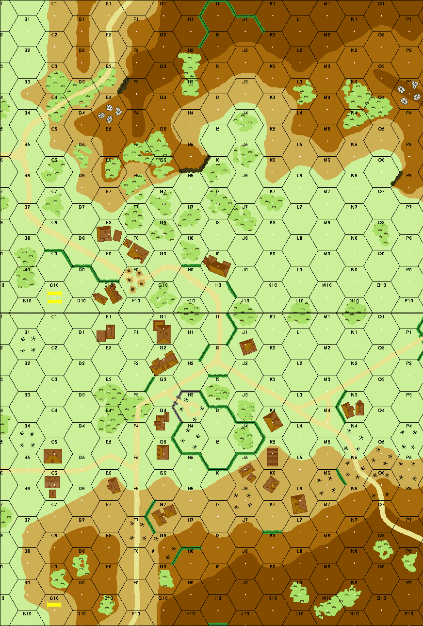 | Misc Rules: | All buildings are Huts. Treat Woods as Brush. Vehicular Dust in effect. |