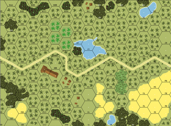 | Misc Rules: | PTO, DJ (Exc: road exists. Road Bonus NA. Palm Trees cost 2MF/2MP. Bldg BB4 is ground level only) |