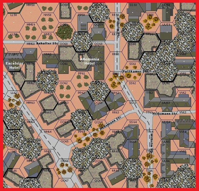 In the maze of ruined blocks both sides fought a close quarters war over each building. At the corner of Alt-Mark Strasse and Thorwaldsenstrasse a small group of desperate Germans converted a large building into an urban fortress. Soon the fortress would be put to the test as an assault detachment from the 220th Guards Rifle Regiment reached the intersection. Finding the building defended with artillery and machine guns 1st Lieutenant Vasili Chernyayev ordered the two 45mm antitank guns supporting his force to fire at the upper level windows to suppress the machine guns while his guardsmen stormed the building. Storm troops, leading the attack with hand grenades, broke into the main level of the house and killed a German crew manning a small artillery piece. Another detachment, with the help of direct mortar fire, captured a nearby building that was supporting the main position. As vicious hand-to-hand fighting broke out in the fortress the Germans launched several counter-attacks supported by tanks and self propelled guns. Intense fighting for this position raged on for the rest of the 25th before the Germans withdrew...Attacker: Russian (Elements of 220th Guards Rifle Regt, 79th Guards Rifle Division)