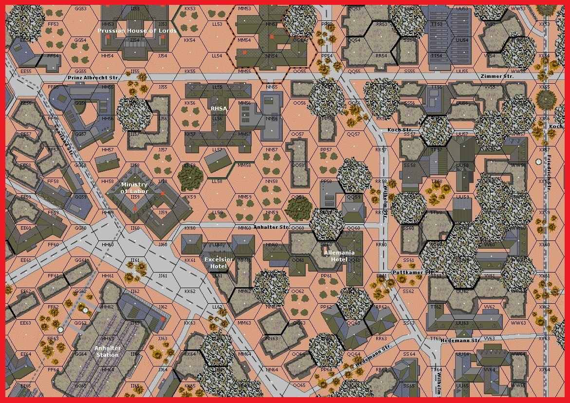 Unable to stop the rising tide of Red Army troops and tanks, the French SS were forced to give up their lines on the Hedemannstrasse and reform on a second line one block north. To cover the retreat, Courturin, a Parisian firefighter in his pre-war life, found a hole in the enemy lines and was able to occupy the basement of a building that the Russian troops had failed to secure. This basement storage room was filled with paper that he soon set ablaze with several hand grenades. As the building was quickly engulfed in flames the Russian troops in the upper levels were forced to abandon their positions to escape the flames. This short respite allowed Fenet to rally his troops and stabilize the line. The stability would be short lived as Russian tanks advanced up the boulevard two abreast and started to blast Fenet's command post with pointblank fire. A lone King Tiger and Frenchmen with panzerfausts returned the fire and the streets erupted with the shock of explosions as more Russian tanks died. Once again the Red Army served up another order of heavy artillery to batter the stubborn defenders. The Russians were able to make small gains at great cost as casualties piled up on both sides and the fighting raged on .Attacker: Russian (Elements of the 5th Shock Army)