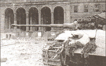 Finally clearing the Potsdam Railroad Station, the 79th Guards Rifle Division reached the Muenchburg Panzer Division's headquarters located in the underground station under the Potsdammer Platz. Guarding the entrances was the crippled King Tiger commanded by Unterscharfuhrer Turk. With its drive train damaged this tank could barely move but the 88mm gun was still able to deal death. Between the fire from Turk's tiger and the headquarters troops firing from the fortified entrances to the station the Red Army was unable to clear the plaza. The SS had set off explosives in the tunnels to block an attack from underground. Not making any progress the 79th halted the attack to re-group. Out of ammo and unable to move Turk and his crew abandoned the tiger and slipped into the rubble. Getting another tiger Turk would again see action during the break-out two days later. With the massive German tank out of action the 79th was able to clear the plaza on May 1st.Attacker: Russian (Elements of the 79th Guards Rifle Division)