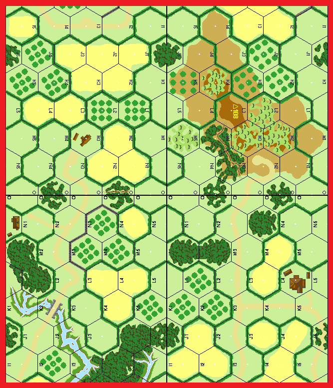 | Misc Rules: | Grain in season, Wooden Buildings, Treat Marsh as Woods. D" "Tank Fright" +1 on PAATCs |