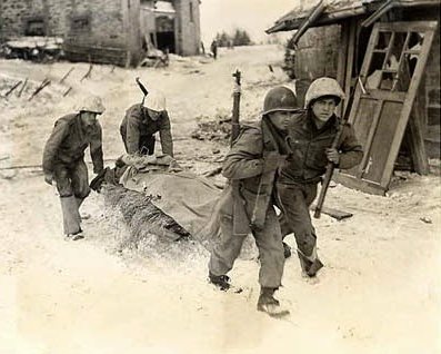 | US soldiers carry a wounded German soldier to an aid station on a litter sled in Thirimont. (thirimont_us_wounded_germ.png) | Image | hoxson1 | 1310 |