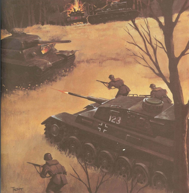 | AFVs: A:16 T-34 M40 PzKpfw IVH x 4 PzKpfw IIIJ x 3 SPW 251/1 x 4 SPW 251/16 x 2 SPW 251/9 SPW 251/sMG |