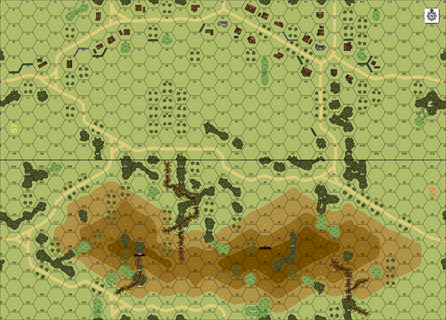 | Misc Rules: | A: Prior to start, Pre-registered (C1.732) 100mm HE concentration. D: Mines, Bunkers, Trenches, Wire |