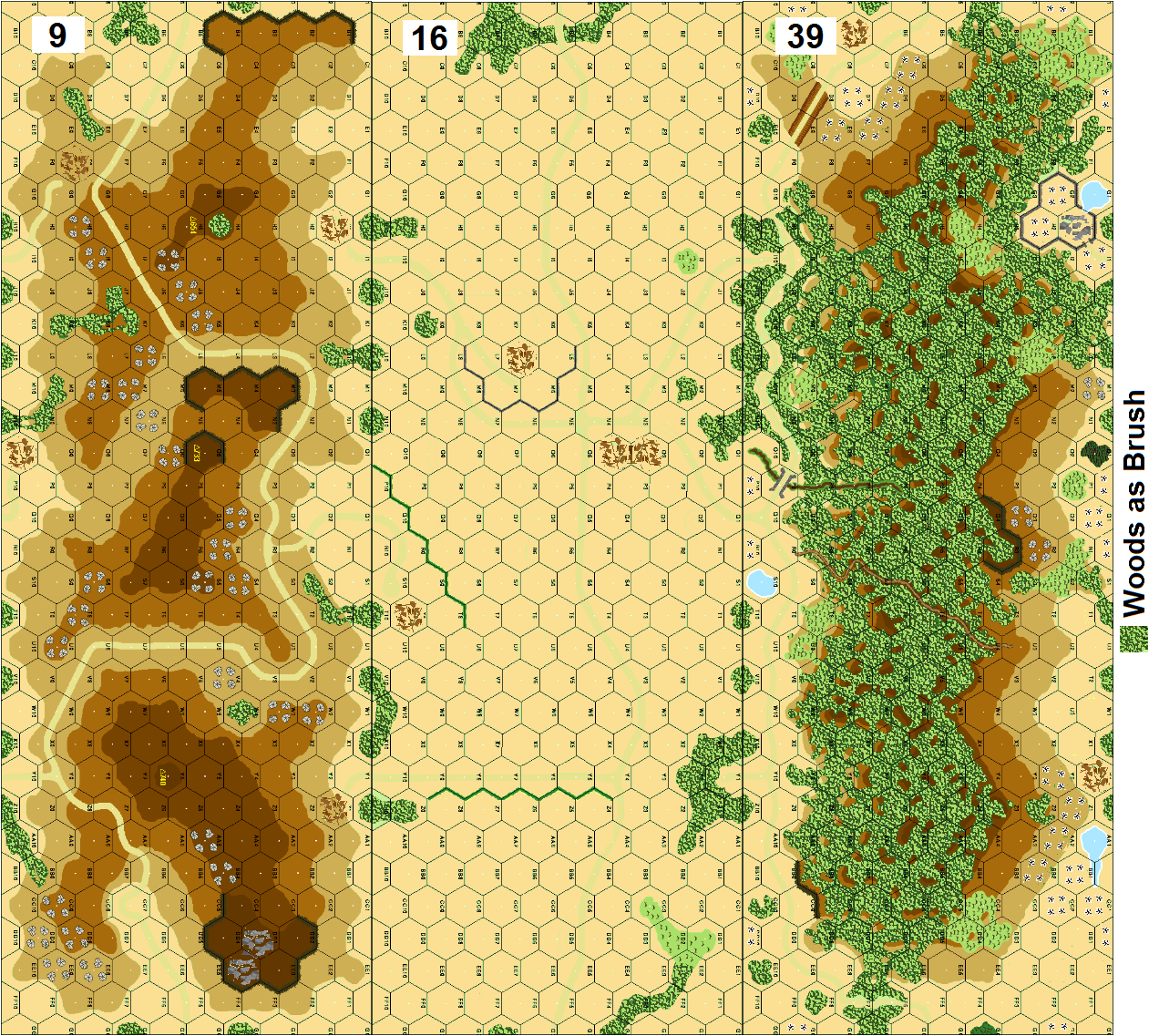 | Misc Rules: | Desert boards, Woods are Brush, buildings are rubbled. |