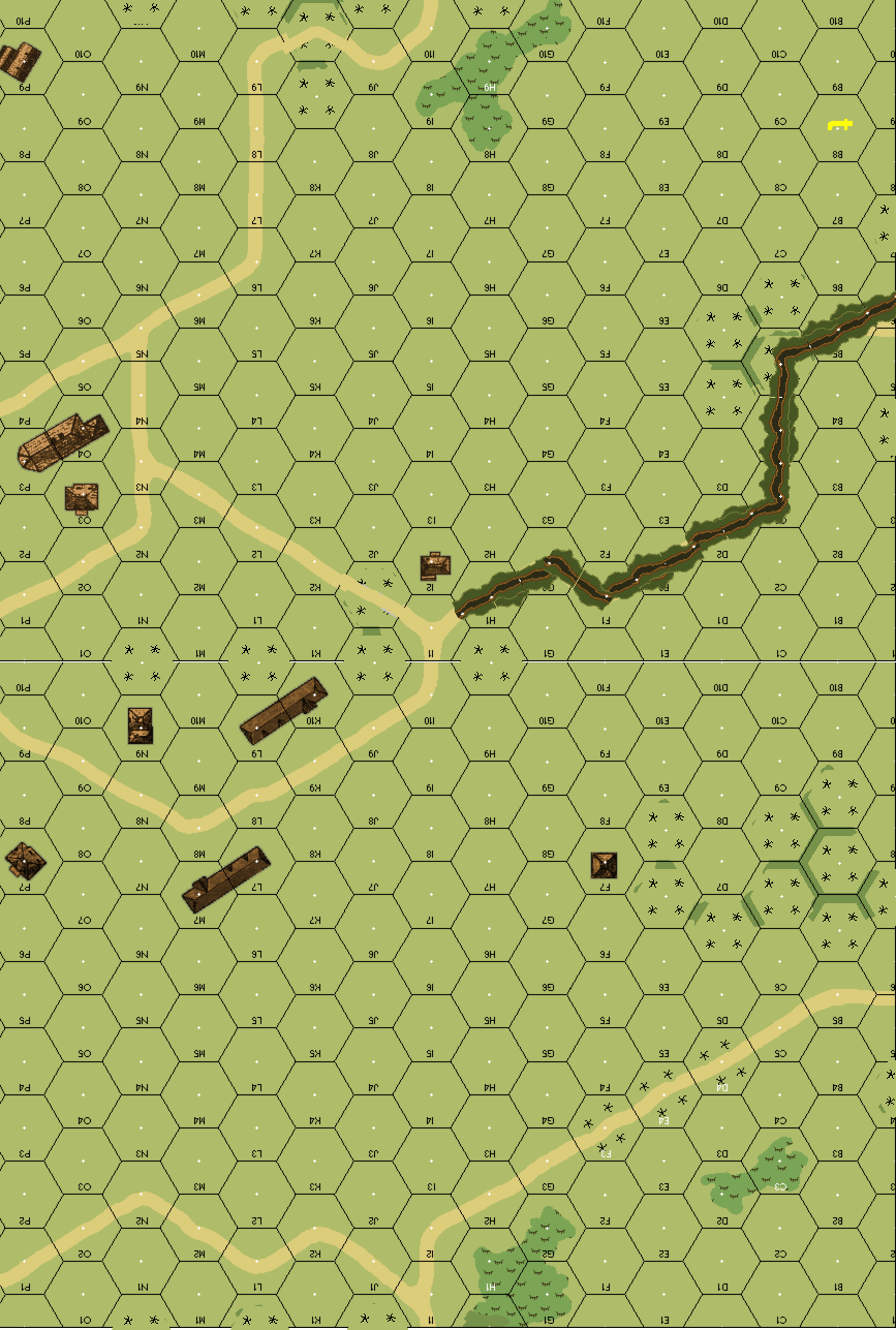 | Misc Rules: | Woods: Orchards, No hills. Road tA6-tH1 is ditch. |