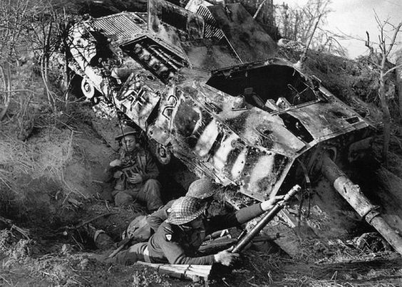 Semovente (StuG) 75/18 wreck used as cover by Brits