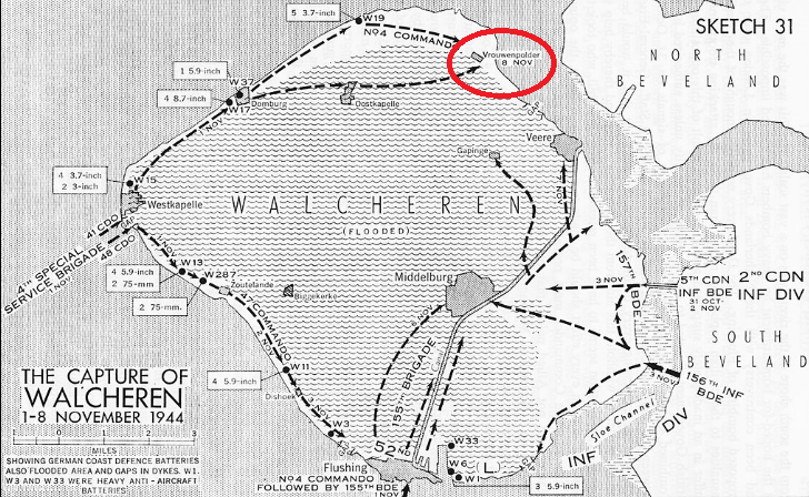 After one week of intense fighting, the Allies conquered most of Walcheren Island and Anvers Harbor looked likely to be opened in a short time. The last elements of the garrison however regrouped in the northeast corner of the island near the village of Vrouwenpolder. Number 4 Commando was given the task of clearing the woods near the village and took on the headquarter elements of Infanterie Division 70.Attacker: Free French / British (Elements of 4.Commando, 4th Special Service Brigade)