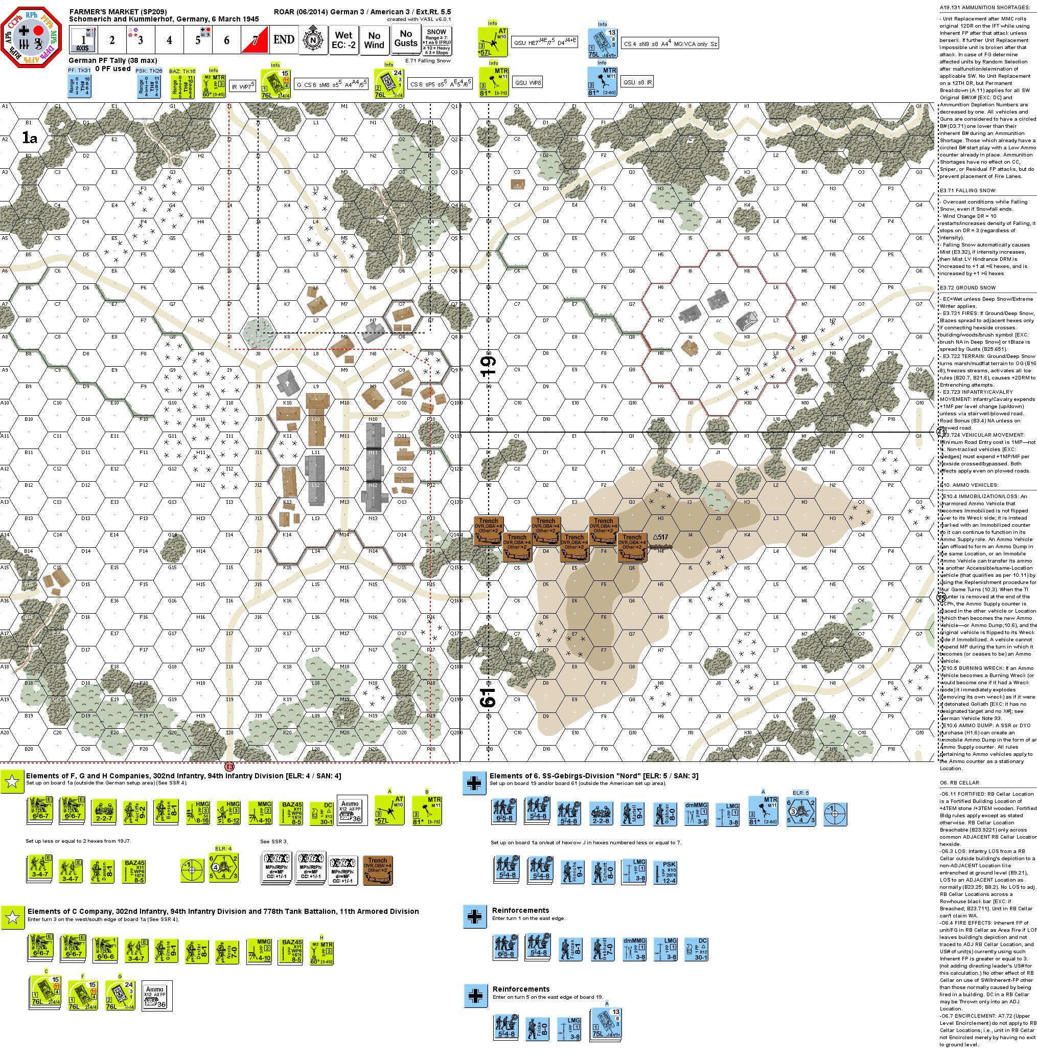 During the early hours of March 6, the 6th SS Gebirgs Division launched a savage attack. As daylight broke, the Americans were pushed off Hill 468 and parts of Schomerich. In town the Germans captured a halftrack with ammunition, which the GIs promptly destroyed with grenades. Fortunately the company runner braved enemy fire and brought more ammo in via a jeep. The fighting became desperate, with Americans defending from cellars and local farmers joining the SS. U.S. relief eventually broke through, clearing Hill 468 and Schomerich. German assault guns counterattacked, but were quickly stopped. Unfortunately for the Americans, they could not reach Kummlerhof, whose defenders had to surrender.Attacker: German (SS) (Elements 6th SS Gebirgs Division Nord)