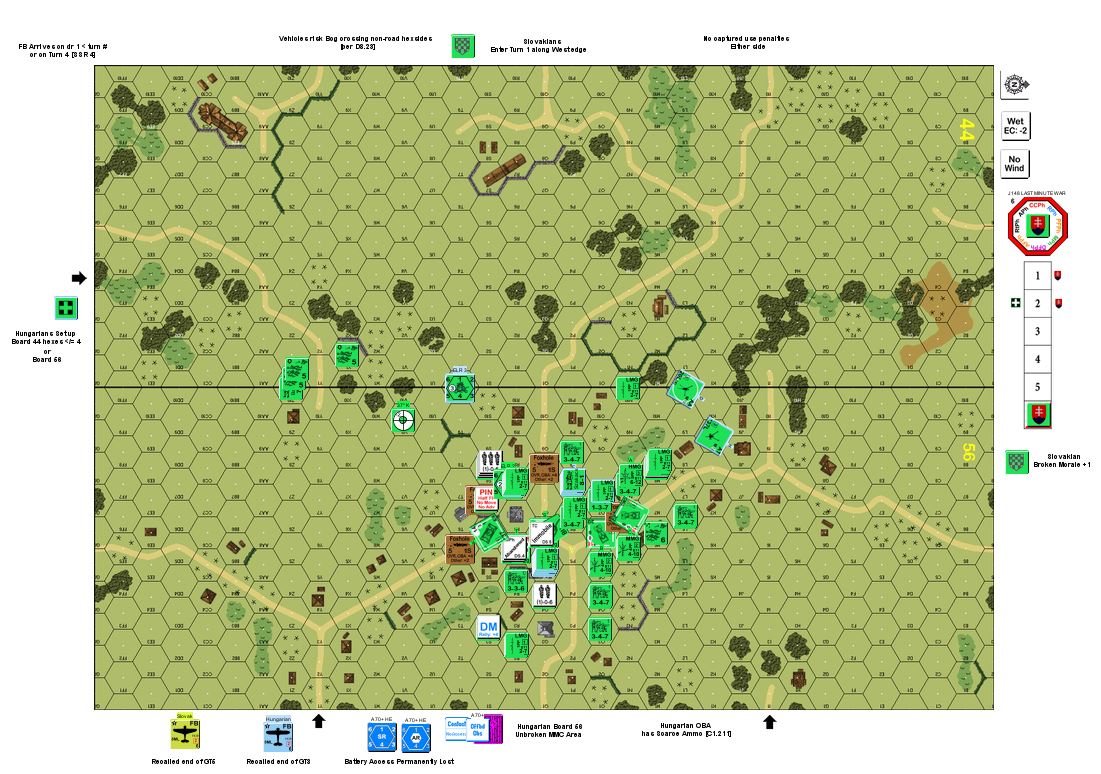 | Misc Rules: | Air Support (both). A: AFVs face bog like mud when crossing non-road hexsides |