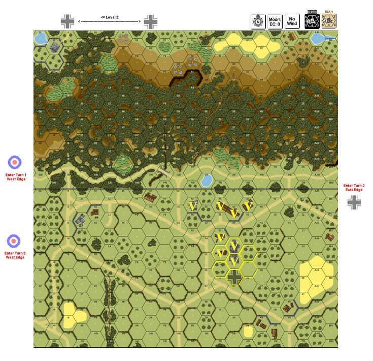 | Misc Rules: | Bocage (B9.5). Bldgs: Ground level only. A: Elite |