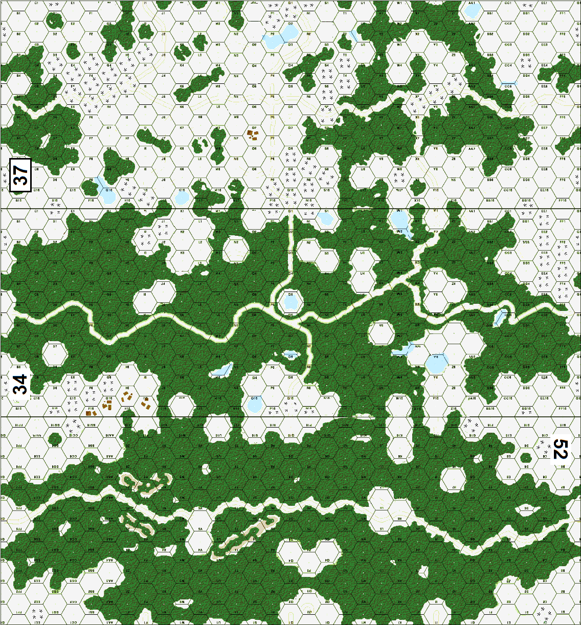 | Misc Rules: | DS, Extreme Winter (no roads or paths exist) Forest rules (B13.7). A: WC, Skis |