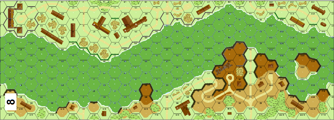 | Misc Rules: | River: Dry, Woods: Brush, Hedges/Walls: Cactus Hedges, Bldgs: Wooden, Single Story |