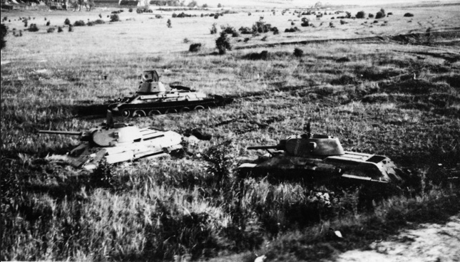 A group of Russian tanks lies mired in the mud of the Russian steppes