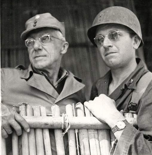Brig. Gen. Frank Merrill (right), leader of famous "Merrill's Marauders", first U.S. infantry unit to fight in Burma, shown with Lt. Gen. Joseph Stilwell, commander in chief of American forces in the China-Burma-India theater, somewhere in Burma.