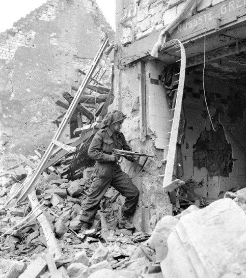 Operation Charnwood: by late afternoon, the North Nova Scotia Highlanders were forming up in an orchard near Buron prior to the third phase of the operation. They planned to push south to capture Authie and the Franqueville, while the Glengarrians would attack south to take an old chateau about a half-mile from Authie. The Glengarrians’ thrust towards the Chateau de St. Louis went well. For the Noth Novas, the fight was tougher. Under relentless fire the order was give “Able Forward”. Able and Delat companies advanced towards Authie encountering many pockets of Germans which had to be eliminated.Attacker: Canadian (Cameron Highlanders and North Nova Scotia Highlanders supported by Sherbrooke Fusiliers and B Squadron, 7th Canadian Recce Regt.)