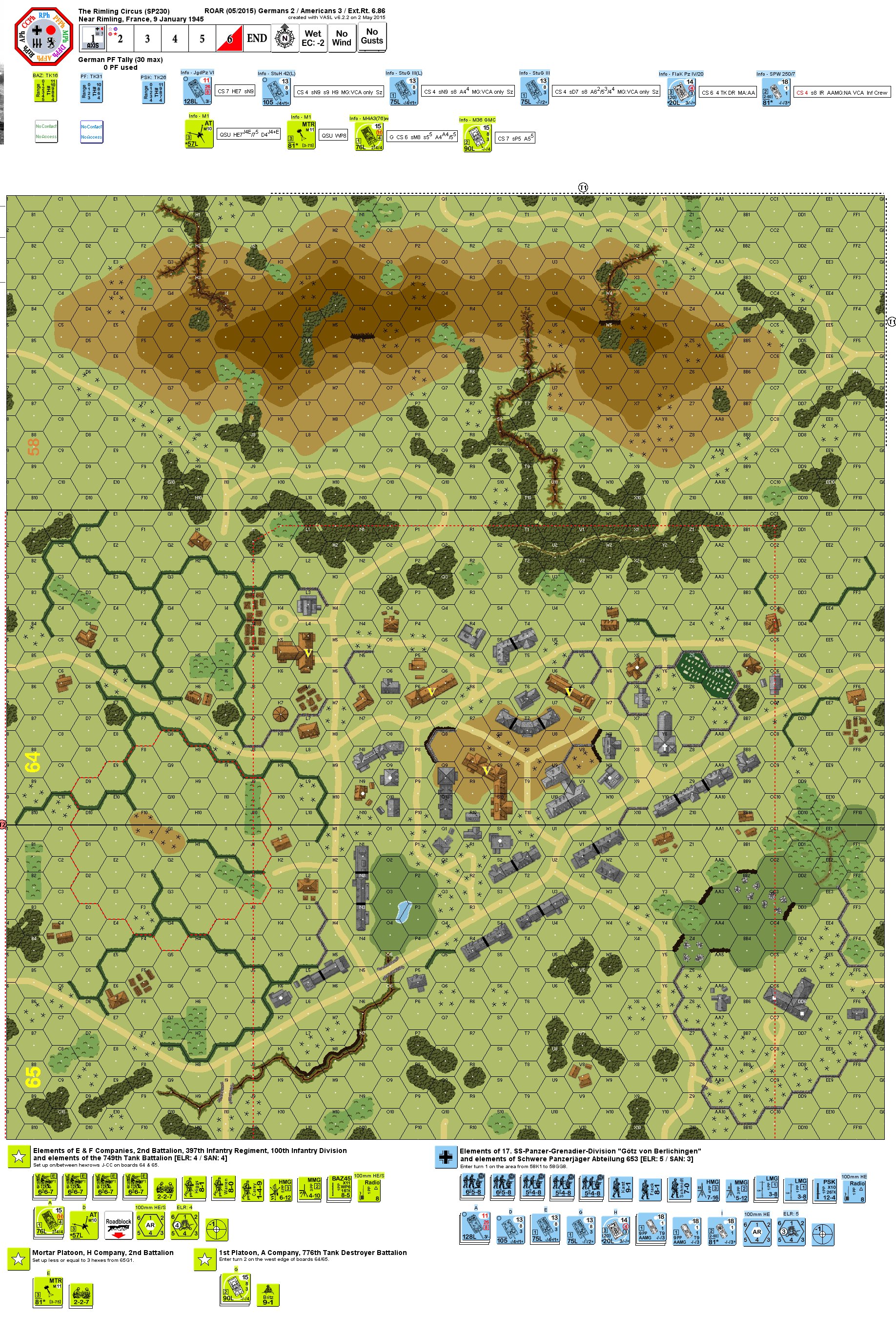| AFVs: D:6 M4A3(76)W x 3 M36 GMC x 3 |