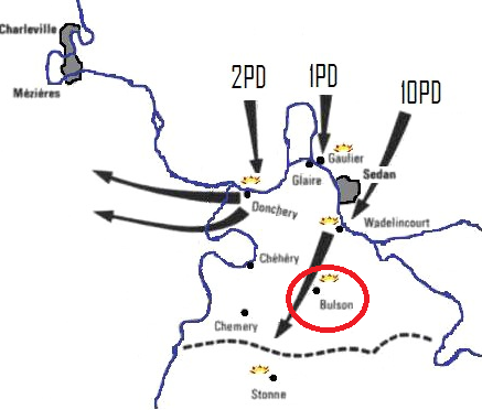 Generalleutnant Kirchner's 1st Panzer Division was advancing south from the bridgehead at Sedan to seize Bulson and the high ground south of the village. As German reconnaissance units reached Bulson, the defending French forces fled in near panic. Recognizing the opportunity to seize the initiative, Kirchner directed 4th Company, 1st Panzer Battalion, 2nd Panzer Regiment to conduct a hasty attack to gain the high ground before the French could launched their counterattack. The high ground was gained just minutes ahead of a counterattack by lumbering French FCM 36s of the 7ème Bataillon de Chars de Combat.Attacker: German (Kompanie 4, Panzer Bataillon 1, Panzer Regiment 2, Panzer Division 1 and Großdeutschland Infantry Regiment and Panzer Kompanie 2, Panzer Regiment 2, Panzer Division 1)