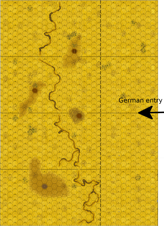 | 2022-12-11 | (A) Jeff B | vs | Steve Etzelmueller | British win | A poorly conceived assault that should only be won by the Germans if the Brits have poor dice or they have hot ones. Attacking a heavily-fortified far-ranging position into the sun with little time and no dust will call for a quick lucky strike, and you'd better guess right on where that strike should be because otherwise the Germans will lose a lot of vehicles. And if they lose a lot of vehicles they'll have to take a lot of land. I figured staying in motion and armored assaulting would provide at least some protection but I was wrong, losing at least a vehicle every half turn. When that's matched with infantry losses I just didn't have enough muscle. When I did stop my tanks to get ready for a gunfight with the reinforcing Crusaders I promptly broke a gun. When I broke another during Turn 4 PFPh, failed to connect with a CH, and lost my last full squad to a "1" sniper I figured I had enough. I was sort of exited to play this, but now I remember why DTO is far down on my list of wants to play. | ||