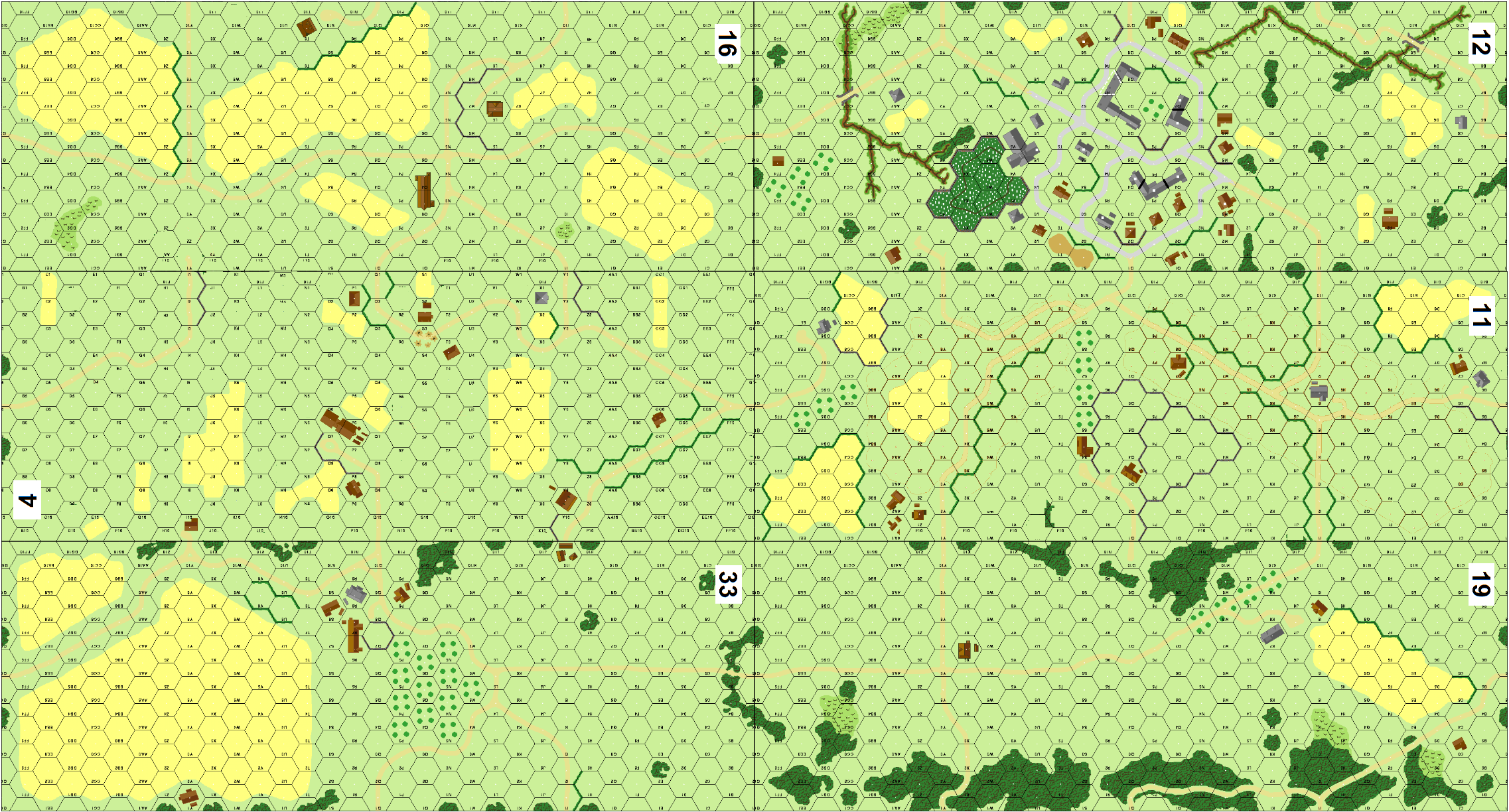 | Misc Rules: | No Woods on Bds 4,11,16; no Hills on 11 and 19. Dry, Vehicular Dust. dr for FlaK 36 AA activation |