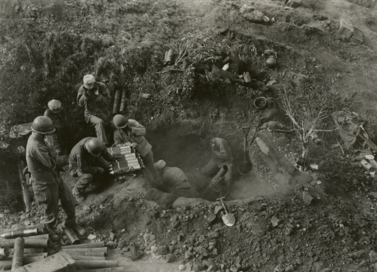On the evening of 3 November, 3rd Battalion, 112th Regiment established a perimeter defense after capturing Schmidt. Company I defended the northern part and Company L the eastern part of the village. The Germans prepared to counterattack during the night of 3-4 November. Group Wolf (III/1055th and 341st Sturmgeschutz Brigade) would attack along the northern side of the Harscheidt Road, and Group Wilschewatri (I/1055th and 519th Panzerjaeger Battalion) along the southern side. The Germans fired a massive artillery preparation as dawn approached.Attacker: German (Elements of Battalions I and III, Grenadier Regiment 1055, Infantry Division 89)