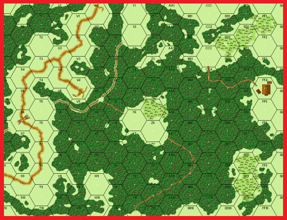 | Misc Rules: | Stream: Dry, Roads: Paths in Wood hexes, NQ (A20.3). D: Entire OB sets up HIP, Wire, Minefields. |