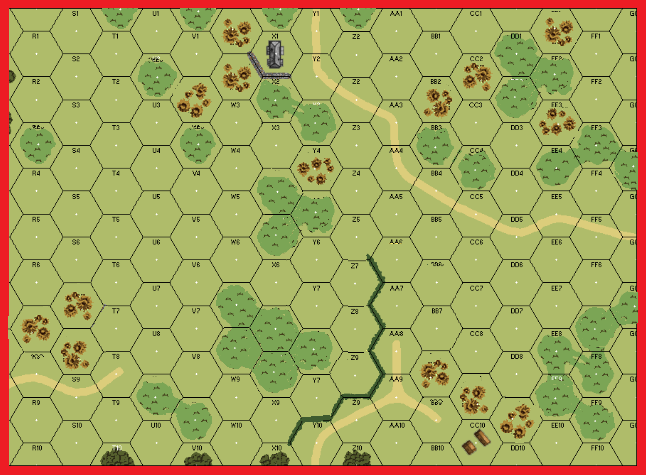 | Misc Rules: | Orchards: Shellholes, Woods: Brush, Soft Ground AFV costs. Entrenching +2 DRM |