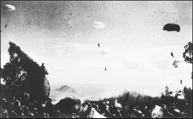 Paratroopers of the 503rd Parachute Infantry Regiment landing in the Battle of Corregidor