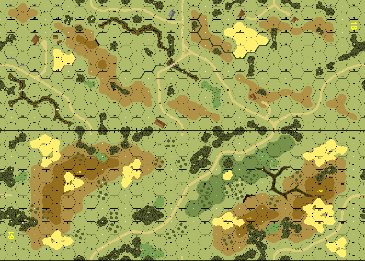 A company of ten Russian tanks (T-34s and a KV-2) from the 2nd Tank Corps attacks with infantry riders to clear two StuGs and two PzIVF2s supported by panzer-grenadiers of the 5th SS Panzer Division “Wiking” from the hills overlooking the roads on boards 18 and 61. This tank battle will test your nerves and require you to use all your tank fighting skills.Attacker: Russian (99th Motorized Rifle Battalion, 99th Tank Brigade, 2nd Tank Corps, 5th Guards Tank Army and 15th Guards Heavy Tank Regiment)