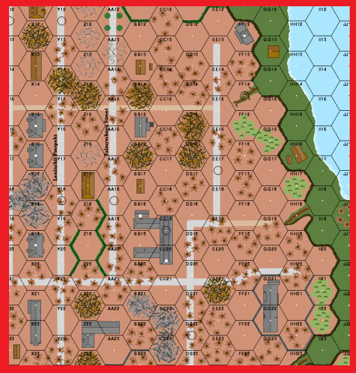 The German 6th Army had been surrounded for almost two weeks. Still, it in turn had trapped the Soviet 138th Rifle Division in a pie-shaped piece of land behind the Barrikady. The 138th launched nightly forays against the eastern edge of der Kessel, hoping to keep the Germans occupied as the Soviet ring of steel tightened around the city. Once again, the “Red House” ( aka “The Commissar’s House”) was the scene of bitter struggle. . .Attacker: Russian (768th Rifle Regiment)