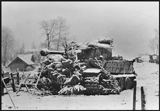 The morning of 10 February 1943 dawned. It was still not yet light when the Russian artillery fire began to fall on the German positions near Krasny Bor and north of Smerdyna. The Soviets launched a pincer attack from the area south of the Pogostye pocket in the east and the Kolpino-Krasny Bor area in the west in an effort to capture Mga and the Kirov rail line. The Russians penetrated three kilometers into the German lines. They captured Krasny Bor but were halted at the Ishora River. The Spanish “Blue Division’s” Fusilier Battalion lost 90 percent of its effectiveness. Nevertheless it held on until a counterattack by the 212th Infantry Division under Generalmajor Reyman threw back the Soviet forces. On 11 February, the 1st Company, 502nd Heavy Panzer Battalion launched a counterattack with the 27th SS-Freiwilligen Grenadier Division. The small force of Tigers, whose mission was to drive the Soviets out of the former positions of the Blue Division, moved off again. Suddenly enemy tanks appeared. Within seconds, Oberfeldwebel Hans Bolter counted ten, approaching from the snow covered woods to the right. The shells fired by the Tigers smashed into the wave of attacking Soviet tanks in rapid succession. . .Attacker: German (SS) (27th SS-Freiwilligen "Flemish Legion" Grenadier Division, supported by 1/sPzAbt 502)