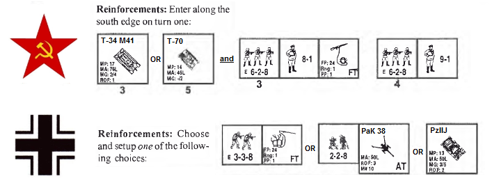 | AFVs: D:3 PzKpfw IVF1 PzKpfw IIIJ x 2 |