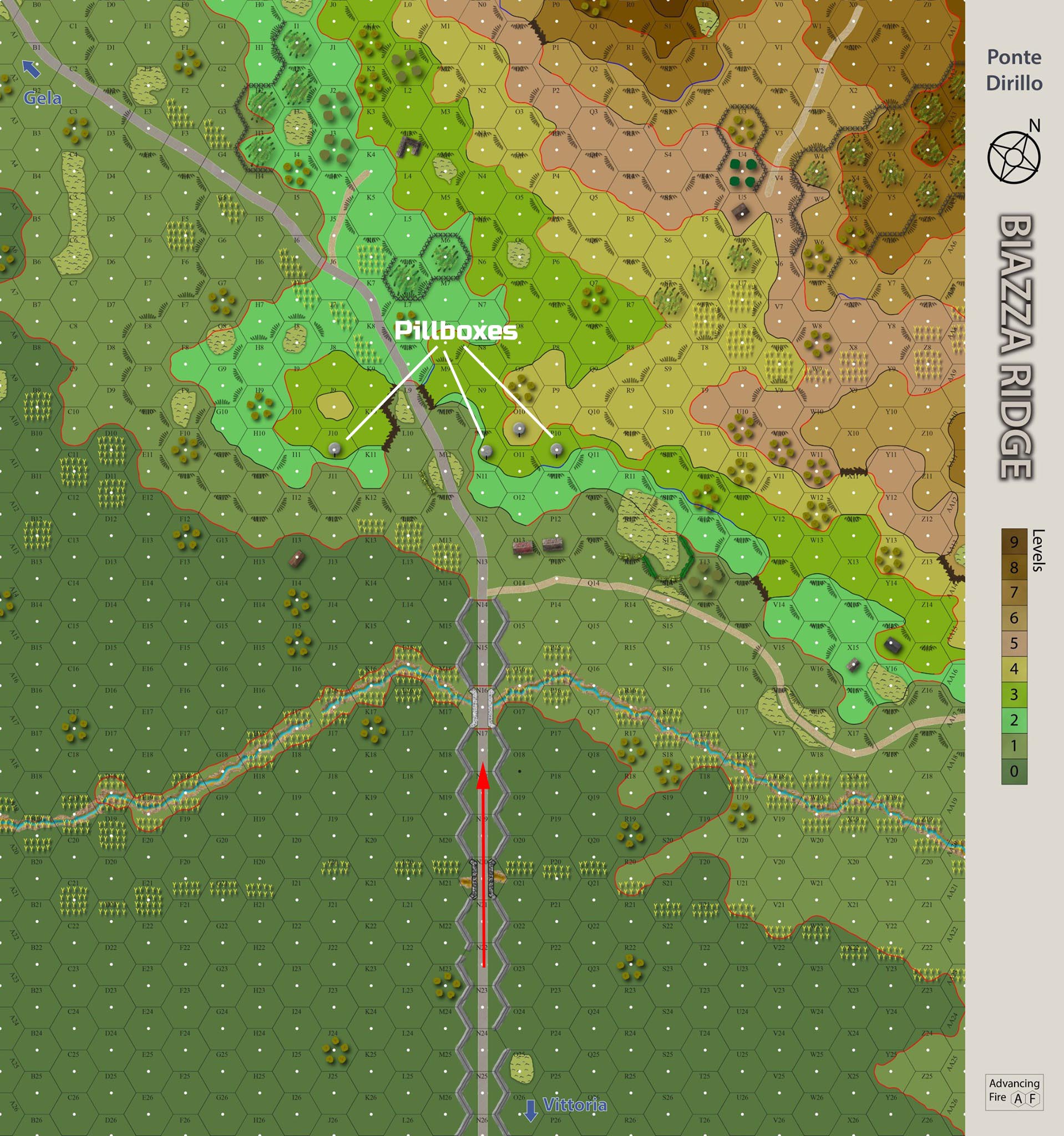 On the evening of July 11th, shortly after the Invasion of Sicily (Operation Husky), German Lt. Goldschmidt and his platoon of Tigers joined forces with Cpt. Weber and a hundred unaccounted grenadiers of the Herman Göring Panzer Division. Headquarters ordered them to proceed westward along highway 115 toward Gela. Their mission was to link with the HG Panzer Regiment coming in from the north in an attempt to push the American's back to the beaches near Gela. Hiding in the foothills overlooking Ponte Dirillo were elements of the 82nd Airborne Division waiting to pounce from captured pillboxes.Attacker: German (Hermann Göring Panzer Division)