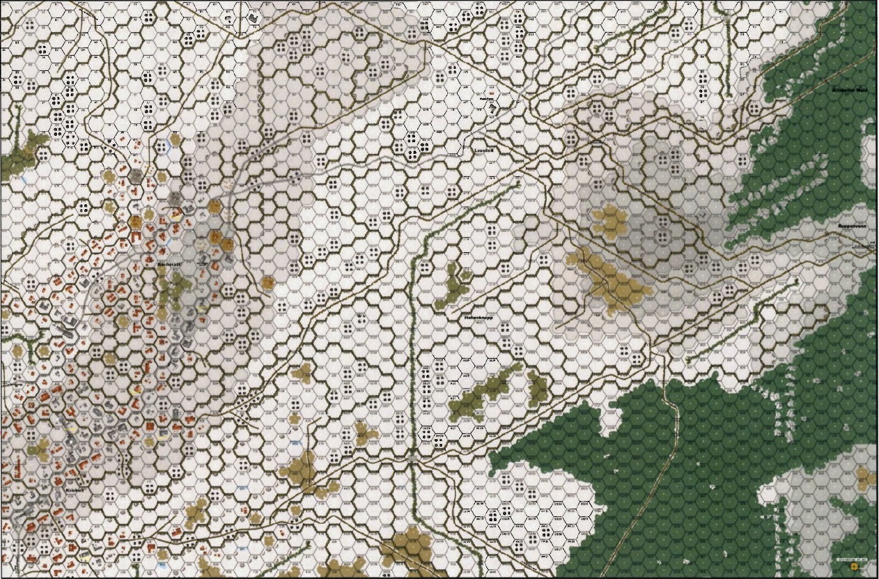 After the wild night of 17/18 December, the Americans were still in control of both of the twin villages. A lull ensued, but would not last for long. In Rocherath, the situation was dire for the survivors of SS Obersturmfuhrer Zeiner's unit, low on fuel, ammunition and coffee while unable to make contact with friendly lines. Moving out of a defensive stance, the small command instead to its remaining Panzerjaegers, band of prisoners, and moved to a new position, about 300 meters east of Rocherath. No sooner had the re-deployment been accomplished than a most welcome sight to the German eyes materialized from the woods edge: the Panthers of SS Panzer Regiment 12 were moving in to the attack, sweeping forward through the morning fog. An intense hose-to-house battle broke out amidst the buildings, walls and hedges.Attacker: German (SS) (25th Panzergrenadier Regiment, 12th SS Panzer Division)
