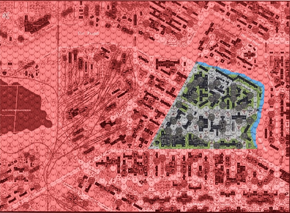 Falling back, the Germans set up in the heavily fortified Kneiphof Stadt Gerichsgebaude (Courthouse), requiring the Soviet troops to bring up flame-throwing tanks to burn them out. Only by nightfall was the sector completely neutralized, allowing the Soviets to approach the river and inner defense perimeter.Attacker: Russian (31st Guards Strelkovy Division)