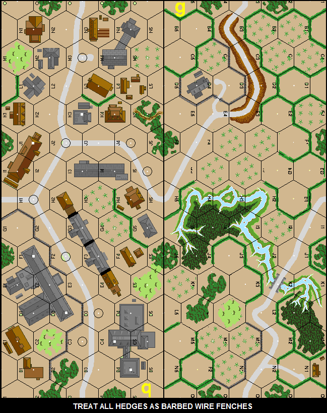 | Misc Rules: | MUD, paved roads. Hedges are Barbed Wire Fences. Both sides AFV choices |