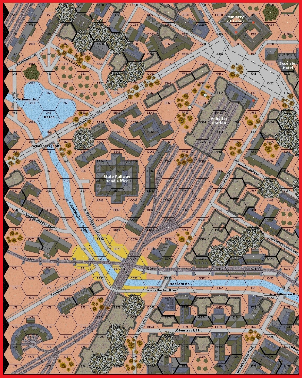 In its assigned sector, the Russian 220th Rifle Regiment with its supporting armor and artillery prepared for an assault crossing of the Landwehr Kanal. Taking advantage of the bend in the canal, the plan was to bring artillery right up to the canal to fire into the flanks of the German positions on the far bank. To provide the cover needed to deploy the guns under the noses of the defenders a smokescreen was to be laid. To back up the thin line of SS and Volkssturm, the remaining artillery and a King Tiger had been deployed near the Anhalter Station just to the rear of the line. The smoke screen allowed the guns to be unlimbered on the south bank of the canal and when the smoke lifted the guns and rockets let loose a whirlwind of shells into the German lines at point blank range. As the defenders hiding in the rubble rode out the fire a lone enemy tank rushed the bridge and burst into flames. Thinking that the tank had been knocked out the Germans stopped firing at it. This few seconds of confusion allowed this burning tank to cross the bridge and roll into the German line with guns blazing. Russian infantry followed the tank across and another bridgehead was gained. Heavy room to room fighting erupted on the north side of the canal as the desperate SS attempted to eliminate the Red Army troops and secure the lines. Additional waves of Russian troops pushed the Germans back and secured control of the bridgehead.Attacker: German (SS) (Elements of SS Panzer Grenadier Regiment 24 "Danmark" and Berlin Volkssturm)