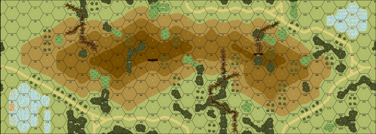 Ongjin Peninsula, South Korea, 25 June 1950. The Battle of Ongjin was a part of the “Operation Pokpoong” that marked the beginning of the Korean War. There are strategic mountains at the center of the peninsula that can observe the entire peninsula easily. From 20 June 1950, ROK 17th Infantry Regiment began witnessing suspicious and unusual movements on North Korea side of the 38th parallel. When the regiment received an order to call off its alert, regimental commander Paik In-yup ignored the order and kept his regiment on high alert for any possible attacks from North Korea. At 04:00 of 25 June a red flare was shot in the air and DPRK (NK) forces began shelling ROK defenses for 30 minutes. After the artillery attack, a battalion-sized force of NK soldiers thrust into the ROK 1st Battalion. (Scenario in PDF format can be found under USER FILES below)Attacker: North Korea (14th Regiment, 6th Infantry Division)
