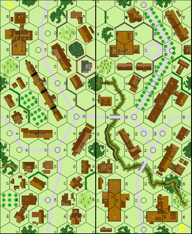 | Misc Rules: | All buildings Wooden, some Huts (G5). D: FB locations2 (B23.9). Tunnels N/A. |