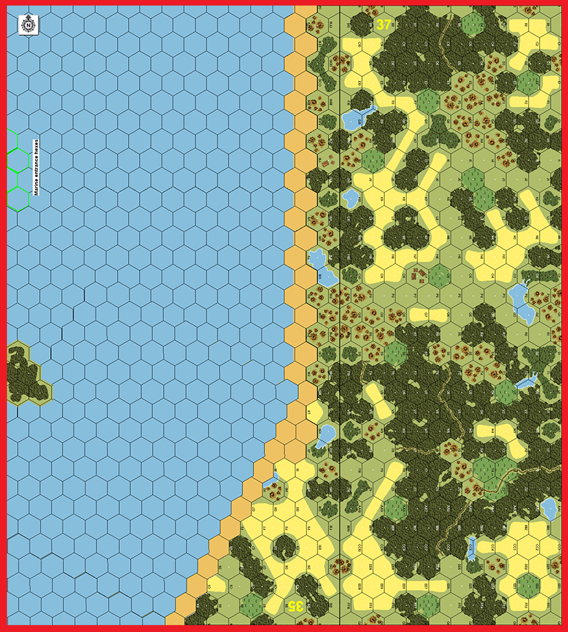 | Misc Rules: | PTO Terrain (G.1), Heavy Surf. A: Seaborne Assault, 5-5-8s are Marine Raiders and D: setup HIP |