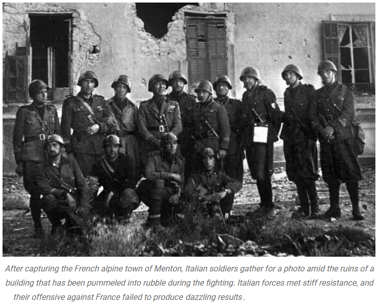 After the fall of Paris and Lyon, Italian leader Benito Mussolini worried that France might collapse at any moment, yet his army had not struck a single blow. He told his son-in-law, foreign minister Count Ciano that he needed 1,000 dead in order to sit at the peace table with France. Consequently, he pressed Marshal Badoglio to begin a ground offensive against France as soon as possible.Attacker: Italian (Elements of 12th Pioneer Company, 5th "Cosseria" Infantry Division)