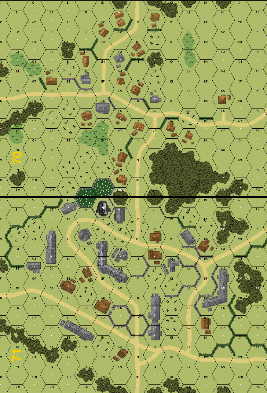 | Misc Rules: | GS (E3.72), NQ (A20.3), HtH (J2.31), Factories (B23.74), Rooftops (B23.8) D: 3 Fortified Buildings |